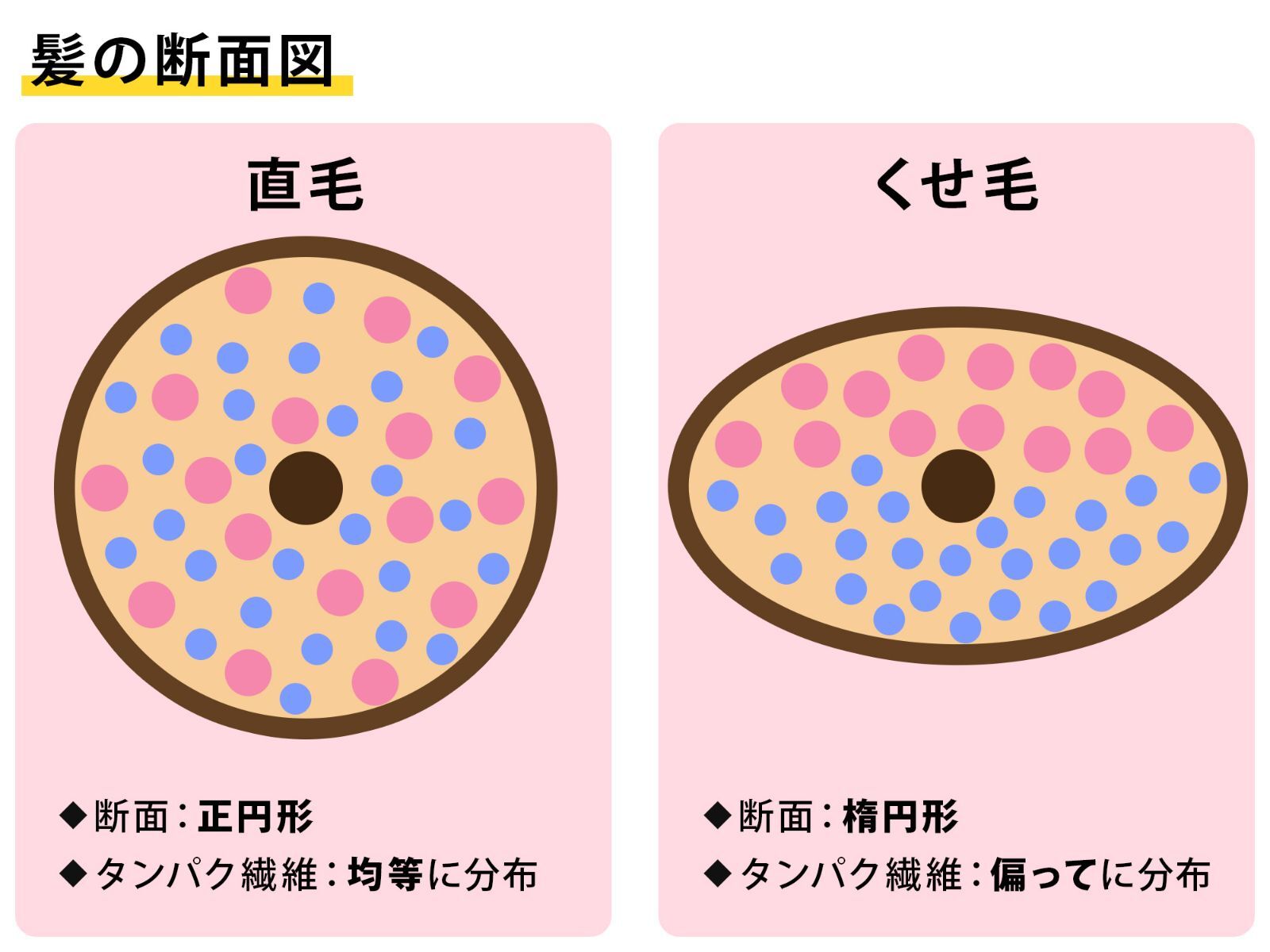 くせ毛さんの髪は、内部の構造が